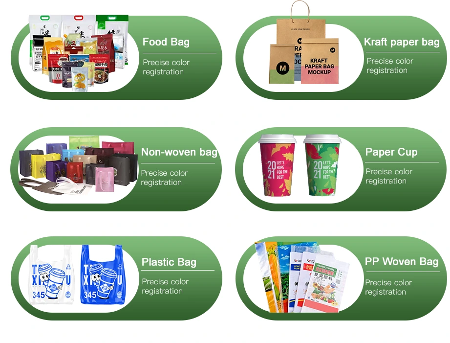 PE、BOPP、PET、CPP、紙などのフレキシブル基材に適しており、食品包装、ショッピングバッグ、ラベル、各種軟包装印刷に最適です。